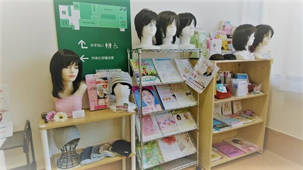 外来化学療法は、入院によって受けるストレスをなくし、普段の生活を送りながら、治療予定や体調に合わせて趣味やお仕事をするなど、患者さんやご家族が自分らしさを保つことができる治療のひとつとなっています。 外来通院をしながら、安全で、適切な化学療法を続けていくためには、患者さんやご家族が病気や化学療法についてよく理解し、副作用とうまく付き合っていくことが大切です。当院の外来化学療法室では、資料コーナーを設置し、患者さんやご家族が、ご自身で体調管理がしやすいように、専任の看護師を設置して相談をお受けしています。