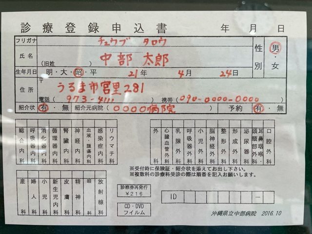 診療申込書を記入し、マイナンバーカード(または保険証)、紹介状を提出してください。